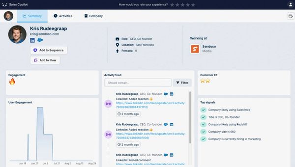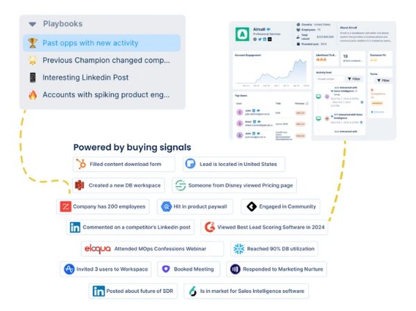 Their reach extends all the way from using a Clearbit integration to enrich your lead records, to providing you with ideal product + website conversion paths, to amazing lead scoring, and plug-and-play sales playbooks. Their platform really shines for PLG use cases with the ability to fully ingest product usage events and surface engagement signals from places like Github.
